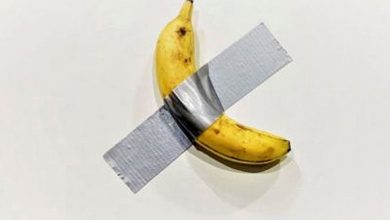 په امریکا کې د انځورګرۍ په یو نندارتون کې یو رسام کیلې په دیوال سریښ يا پلستر کړي وي چې…