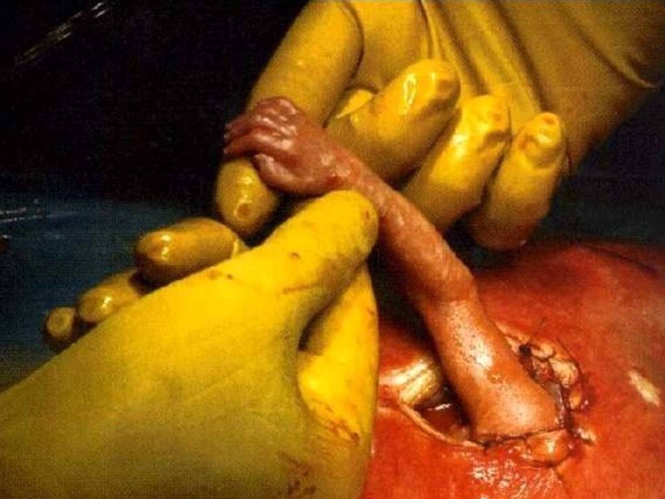 عکاس وايي زه د جراح ډاکټر په څنگ ګې ولاړ وم، او د ماشوم د مور رحم ته مې کتل ناڅاپه رحم په لړزېدا شو، غوښتل مې عکس ترې واخلم چې يو دم ترې يو کوچنى لاس راووت د جراح ډاکټر لاس يې ټينگ ونيو او ويې ښوراوه، ما خپل عکس اخيستى و، دا صحنه دومره عجيبه وه، چې زما تر شاه مرستيال ډاکټر چيغه کړه واى دا څه پېښ شول!!!