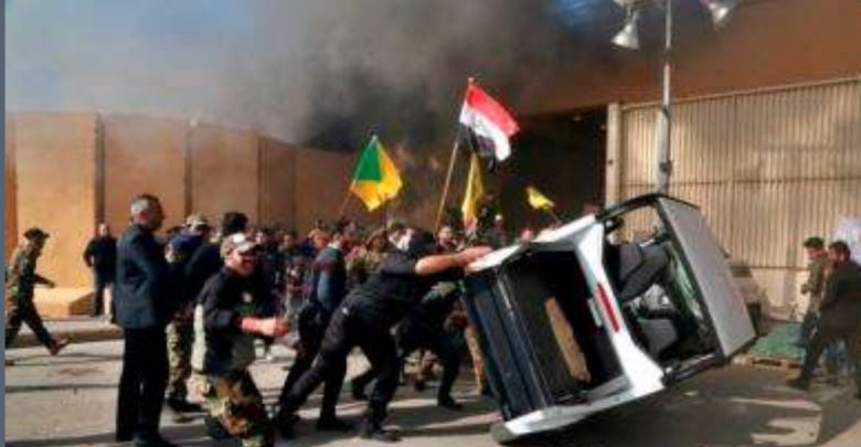 د عراقي شیعه ملیشه ډلو په سلگونو پلویانو چې زیات شمیر یې په پوځي یونیفورم کې وه نن یې بغداد کې د امریکا پر سفارت حمله وکړه، د امریکا بیرغ یی وسوځاوه او د سفارت دیوالونو سره یې اور بل کړي وه.